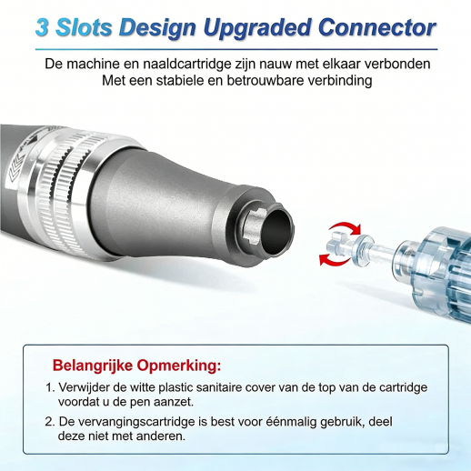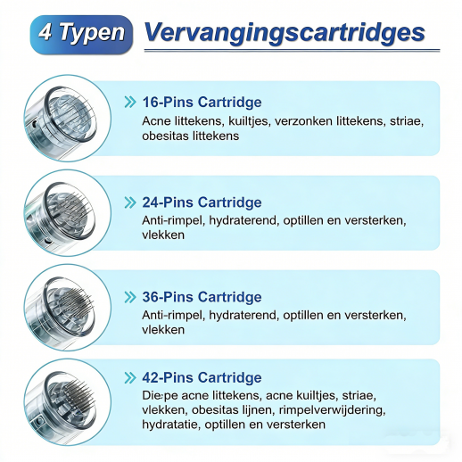 Wij raden onze nieuwste en toch meest effectieve microneedlingpen aan, de Dr. Pen M8. De naalden zijn veel dunner en scherper, wat resulteert in merkbaar betere resultaten na elke behandeling.